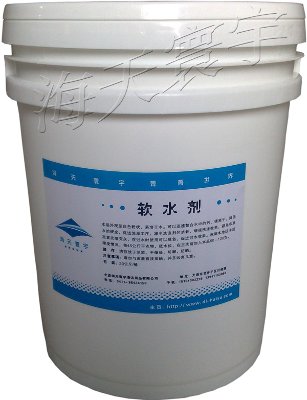 白色粉狀的水質軟化劑??梢则嫌菜械拟}、鎂離子,增強洗滌效果,減少洗滌劑的消耗。同時可以脫皂,防止衣物發黃、變灰。